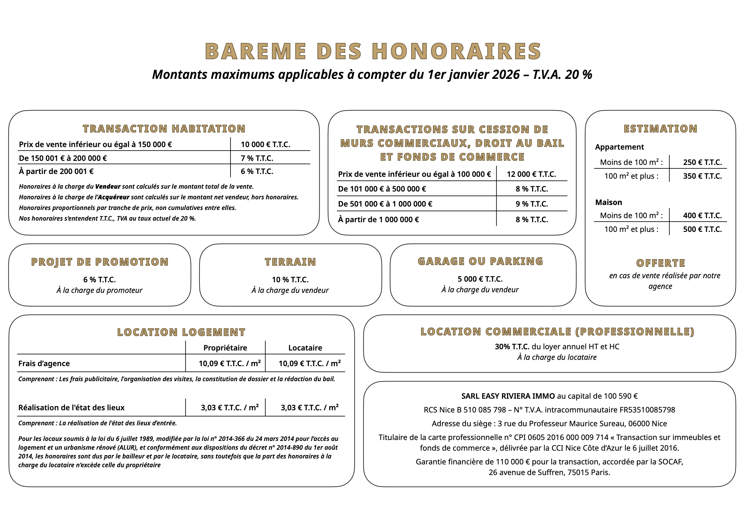 • NOS HONORAIRES