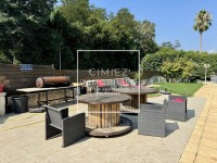 Le rez-de-jardin se compose d'un séjour avec une cheminée, d'une cuisine indépendante, d'une buanderie, de WC, d'une salle à manger, d'un bureau, d'une chambre avec salle de douche et des WC.