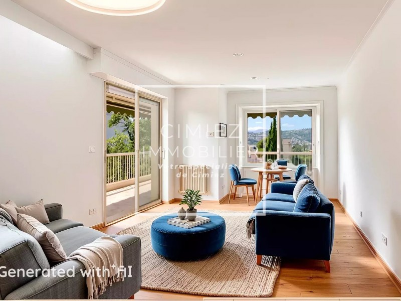 NICE COEUR CIMIEZ : Au sein d’une belle résidence de standing, au calme d'une impasse, appartement 3 pièces d'angle et traversant de 85 m² avec magnifique vue dégagée verdure et Régina.