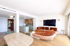 Situé au deuxième étage d'une résidence prisée avec gardien, court de tennis et piscine d'eau de mer, l’appartement a été rénové récemment par le cabinet Batiik Studio.